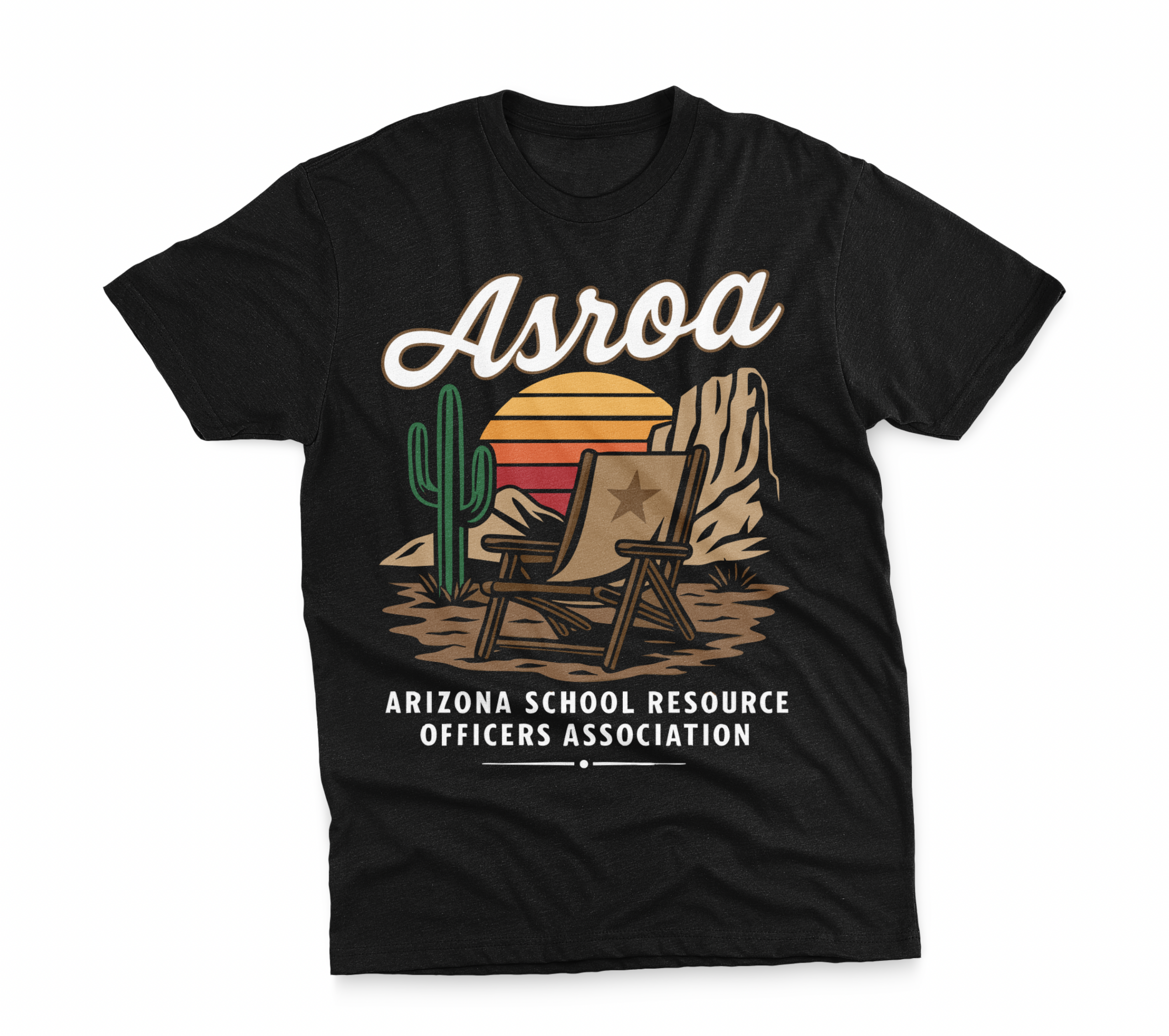 Celebrate the Arizona landscapes SROs call home. The ASROA Desert Sunset Tee brings a relaxed, vintage-inspired feel with a scenic chair-and-saguaro graphic set against a warm desert sunset. It captures the spirit of resilience, community, and the everyday environments where School Resource Officers build trust with students. Made from a soft, mid-weight cotton blend, this tee delivers an easy, broken-in feel from the first wear while staying durable and structured over time. Whether you’re at a conference, a school event, or just enjoying a day off, it’s the perfect way to rep ASROA with a touch of Arizona pride.